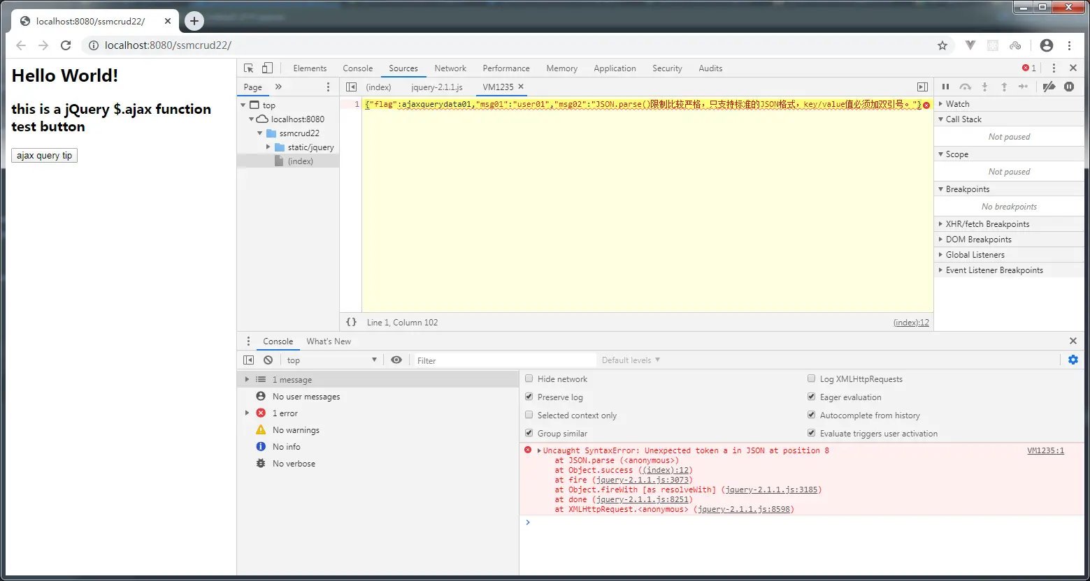 最近开发中,遇到框架不知名的ajax调用异常,决定用jQuery的ajax来替换。记录一下本地工程引入jQuery的ajax方法的测试效果。