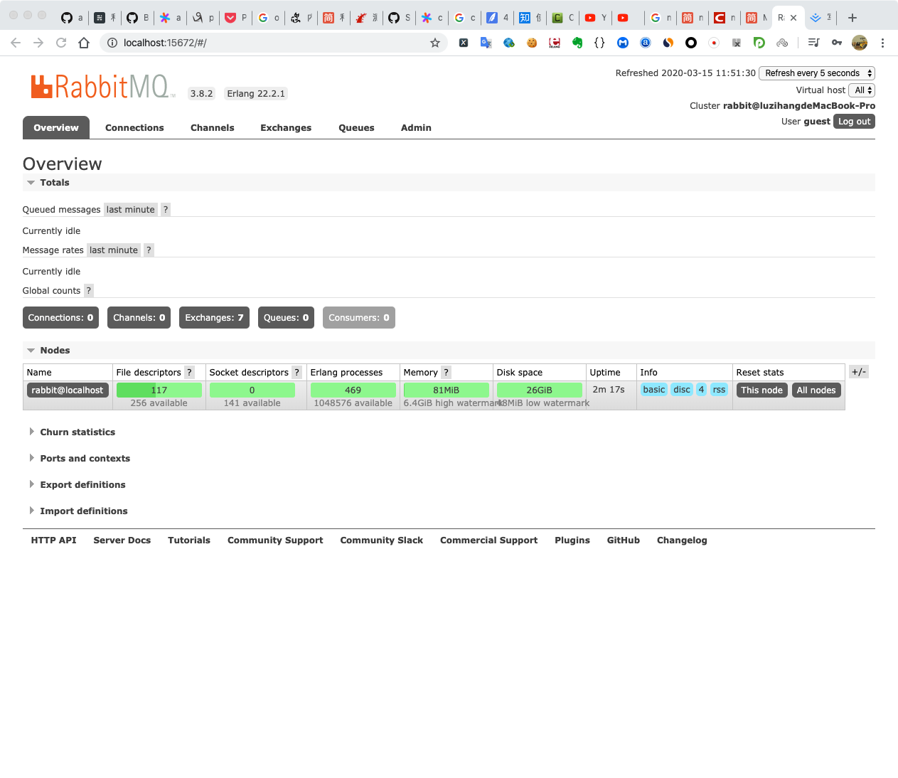 🍺 /usr/local/Cellar/rabbitmq/3.8.2: 280 files, 20MB, built in 43 seconds