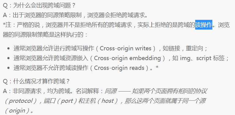 a.JSONP(基本思想是,网页通过添加一个script元素,向服务器请求JSON数据,这种做法不受同源政策限制;服务器收到请求后,将数据放在一个指定名字的回调函数里传回来) 缺点:JSONP只支持GET请求