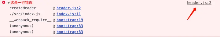 src/header.js中打印一行错误。然后要去webpack.config.js中把mode: "development"这行代码注释掉,因为开发模式下,默认是开启了sourcemap的。