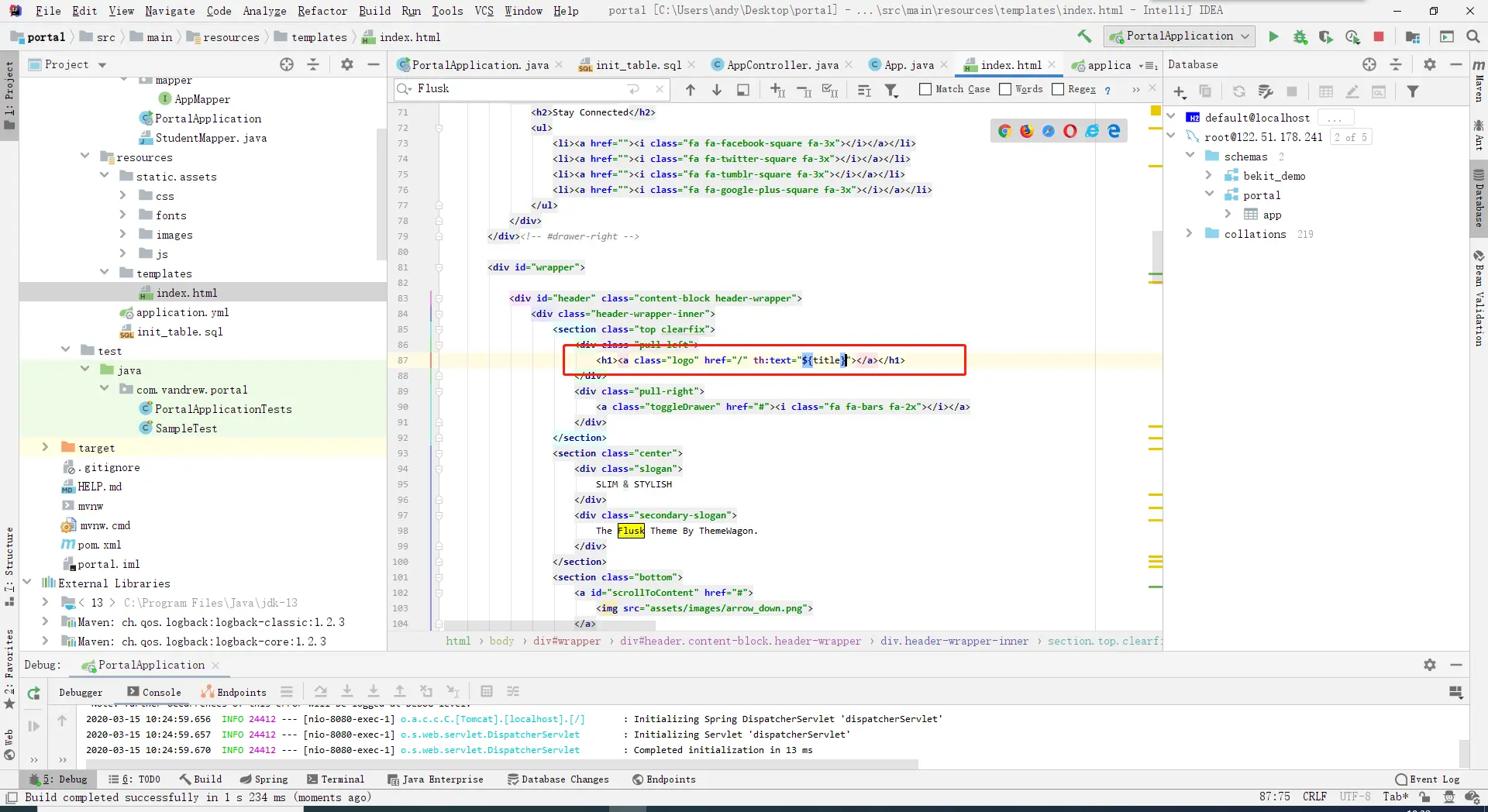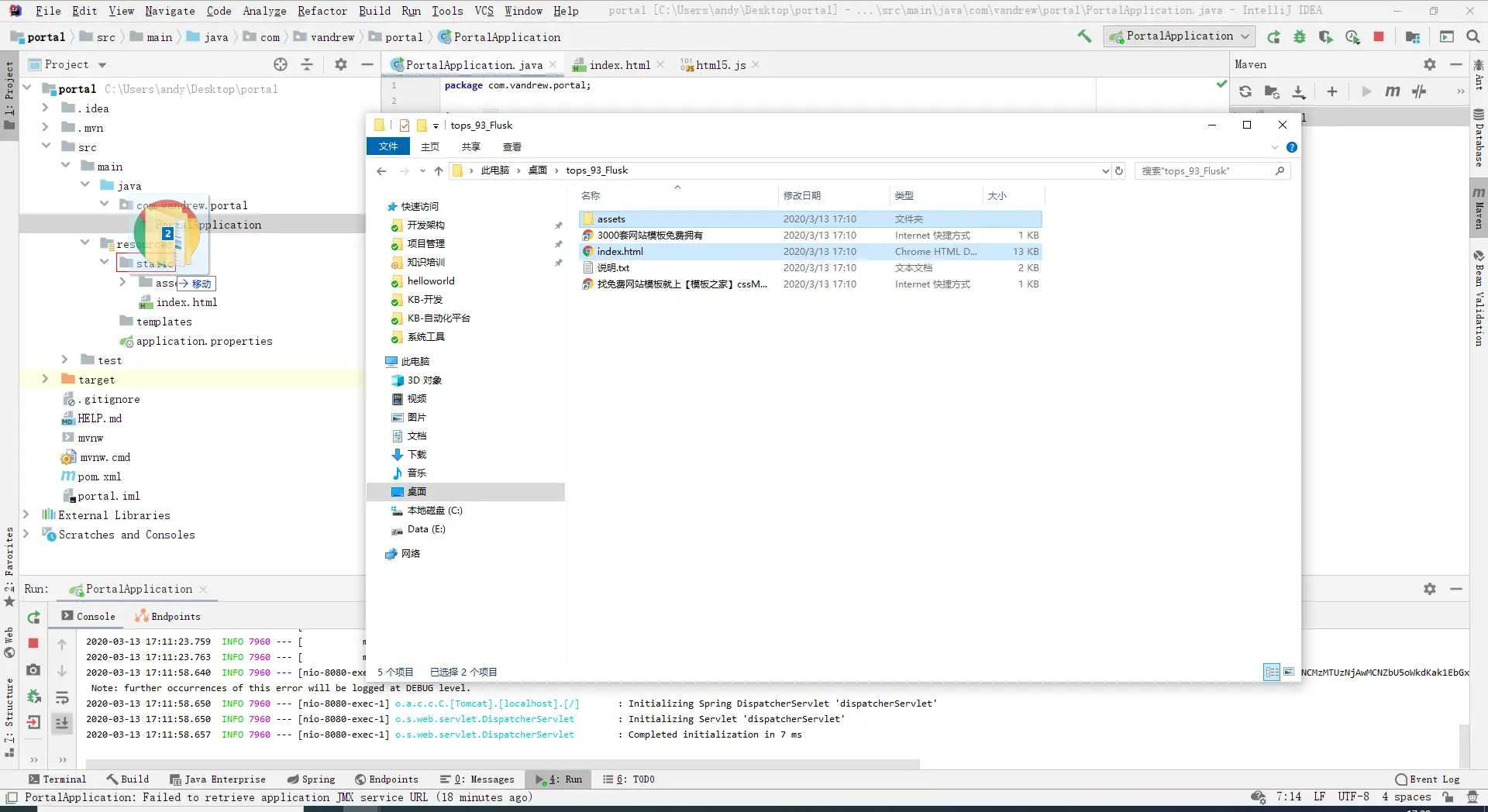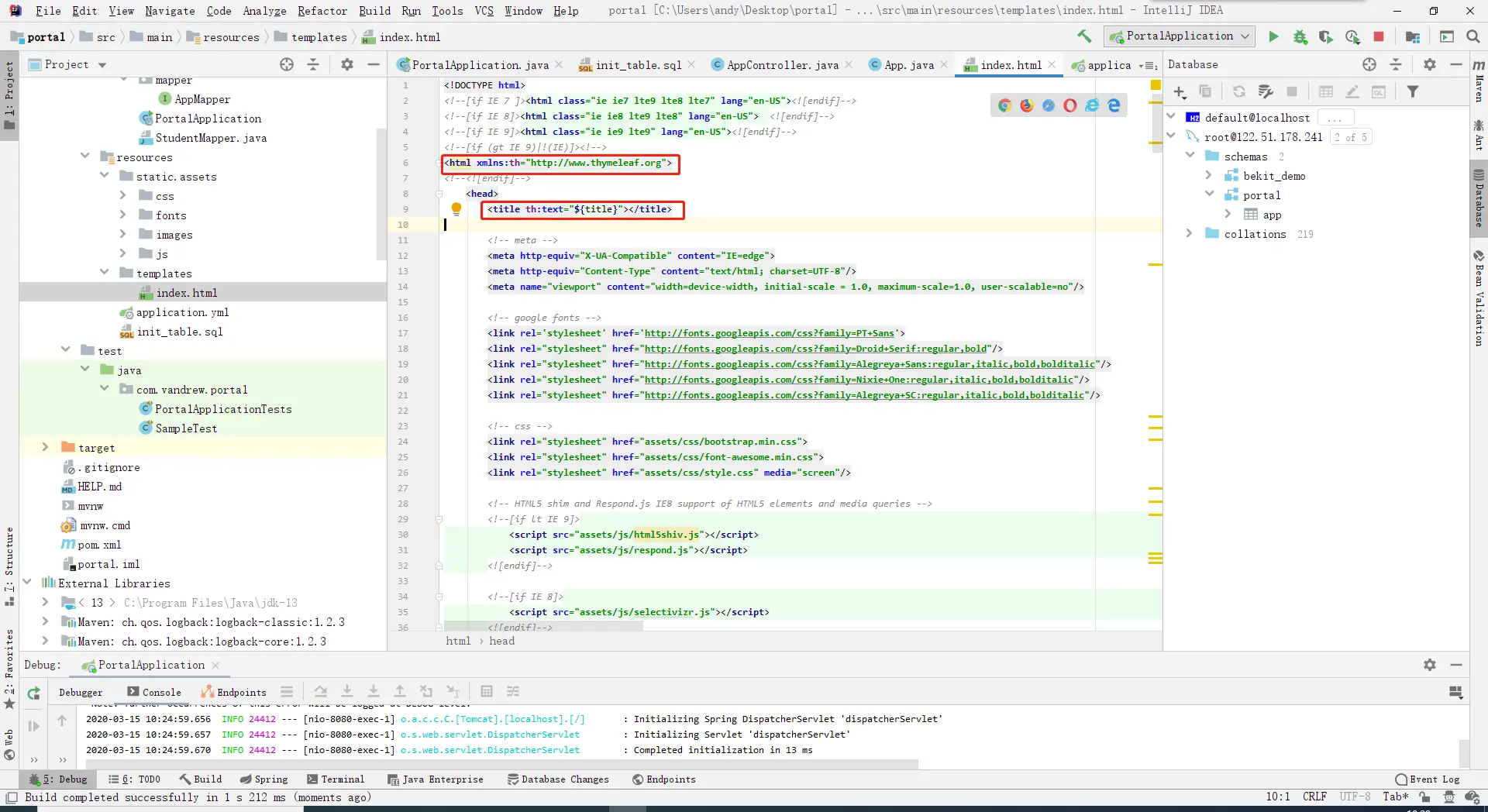 把index.html从静态目录(C:\Users\andy\Desktop\portal\src\main\resources\static)移到 模板目录(C:\Users\andy\Desktop\portal\src\main\resources\templates)
