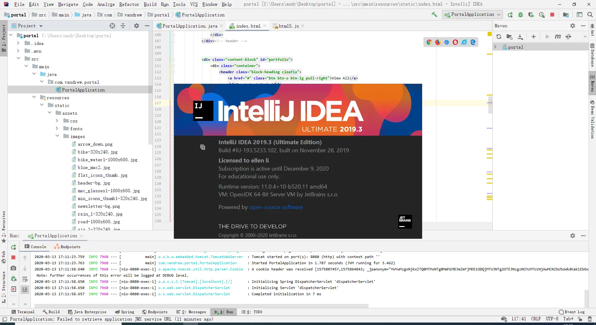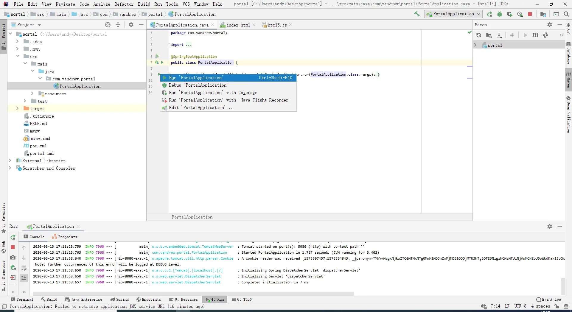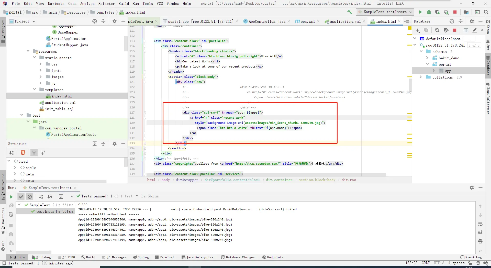 把index.html从静态目录(C:\Users\andy\Desktop\portal\src\main\resources\static)移到 模板目录(C:\Users\andy\Desktop\portal\src\main\resources\templates)