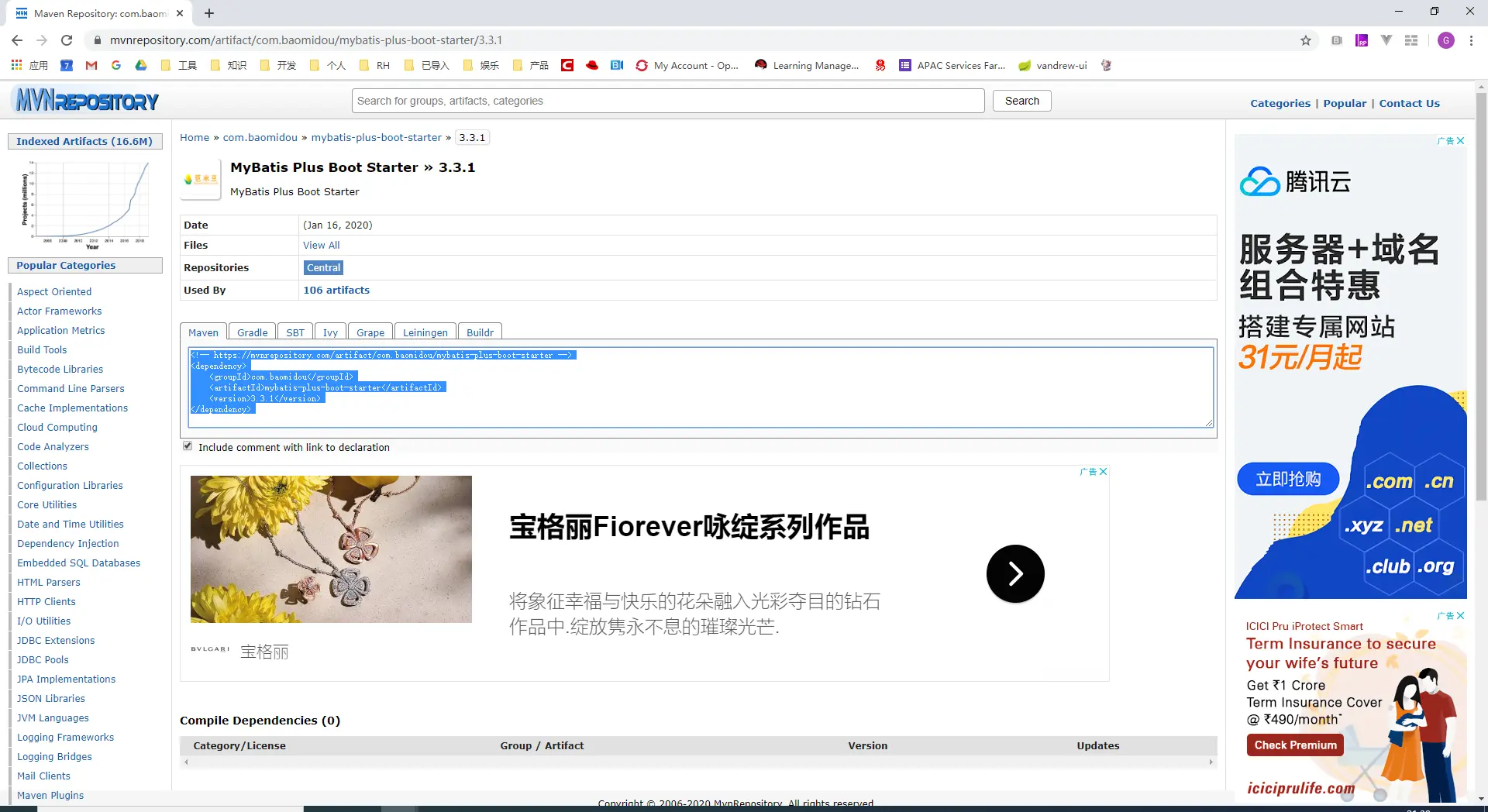 https://mvnrepository.com/,找到mybatis-plus - 加入pom.xml,IDEA开始自动下载依赖