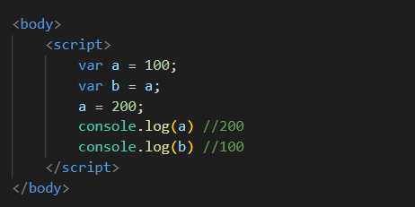 值类型:值类型变量在内存中独立存储,相互不影响,所以示例中打印出a为200,b为100