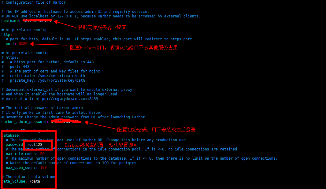"xxx.xxx.xxx.xxx:port" #配置Harbor仓库地址,配置到IP+端口即可