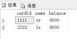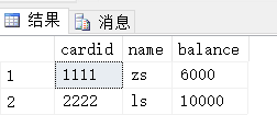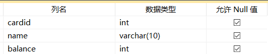 cardid是账户卡号; name是账户户主;balance是账号余额