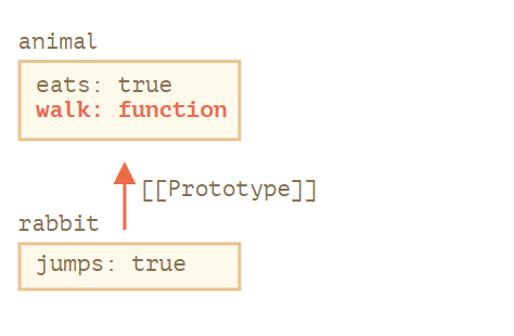 rabbit.walk(); // Animal walk该方法是自动地从原型中获得的,像这样: