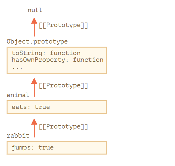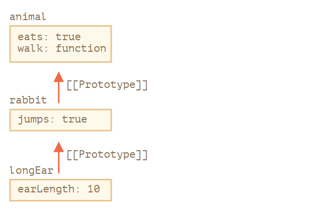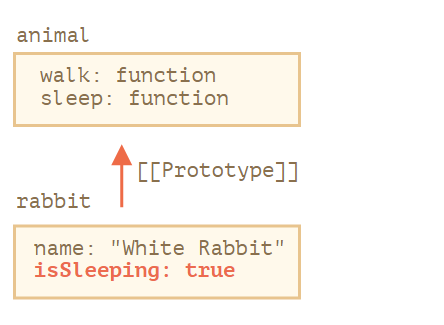 在这儿我们可以说 "animal 是 rabbit 的原型",或者说 "rabbit 的原型是从 animal 继承而来的"。