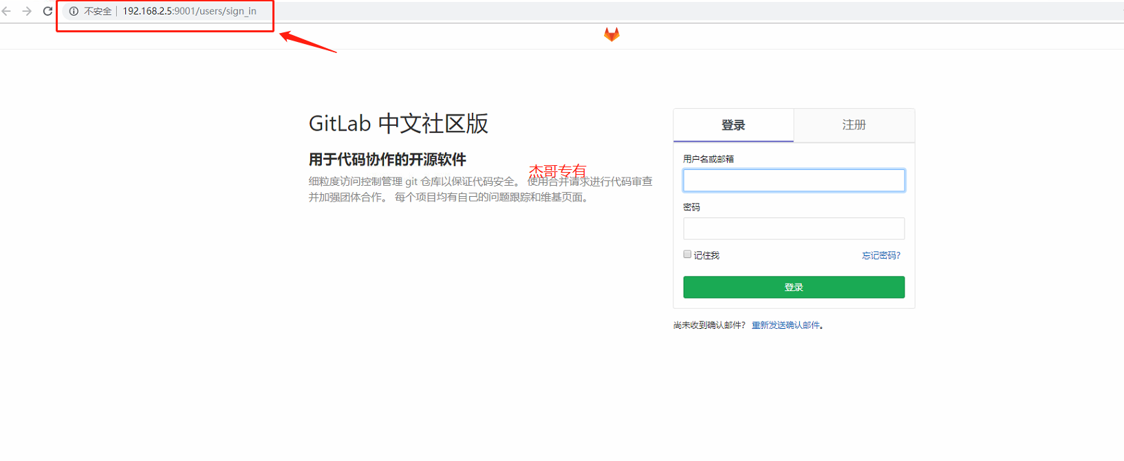 port 9001 服务对外地址,可自行修改,修改时 external_url 'http://192.168.2.5:9001'、