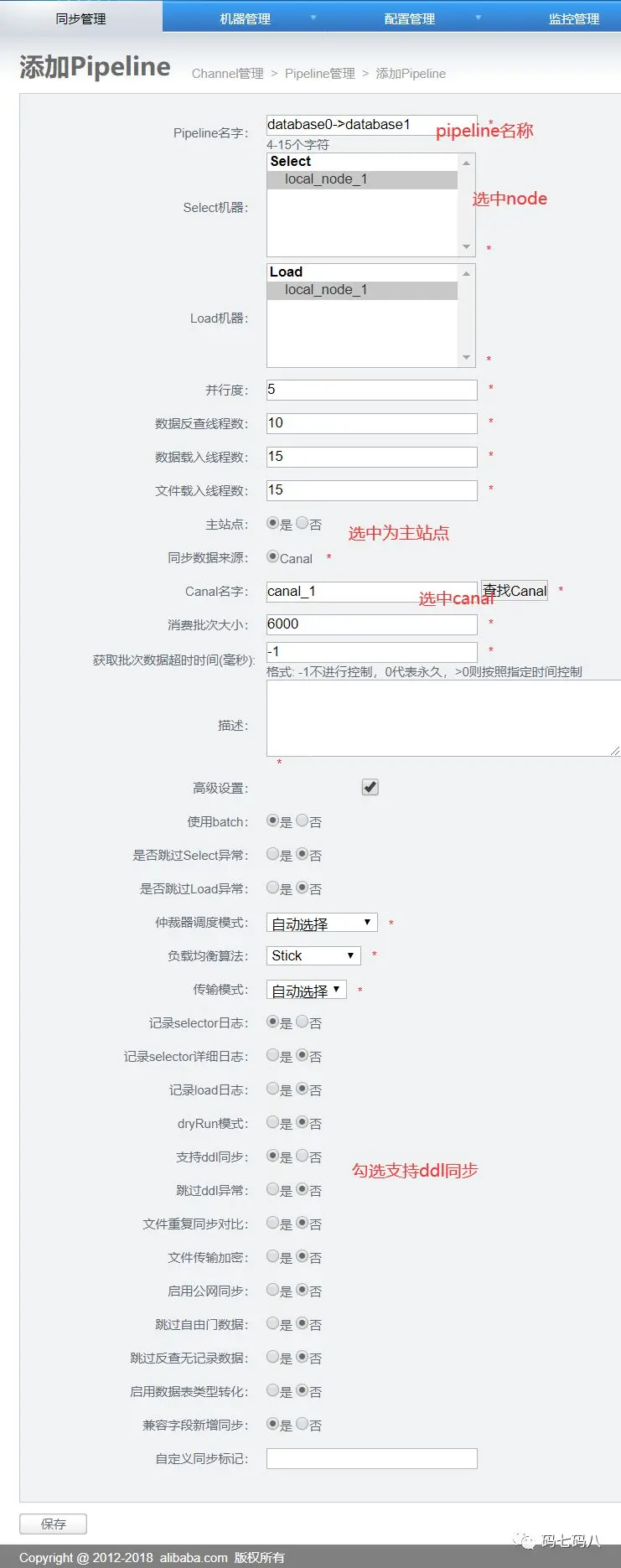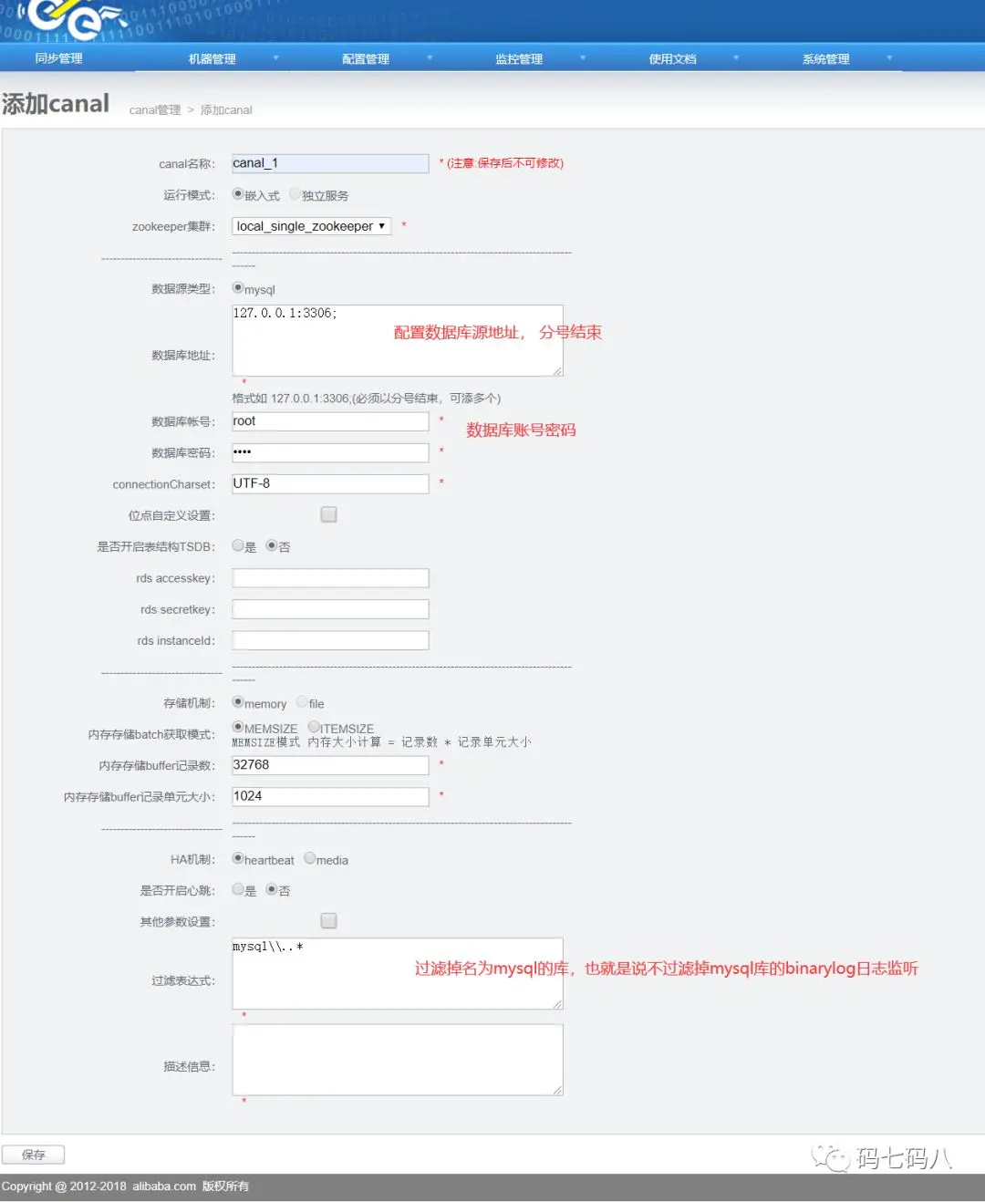 配置管理>canal>添加canal