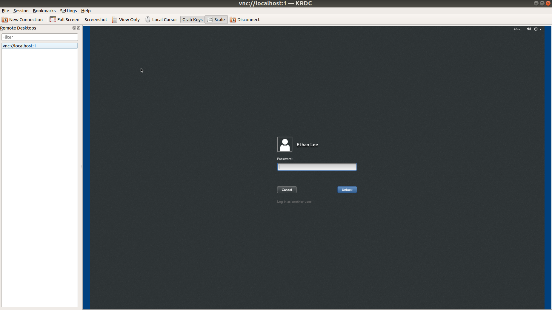 此时会启动VNC连接,可以使用VNC连接工具krdc,安装方式: