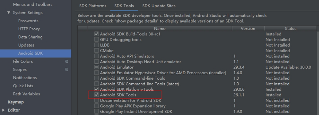 Android SDK Tools是 Android SDK 的一个组件。它包含一整套适用于 Android 的开发和调试工具,并且内置在 Android Studio 中。