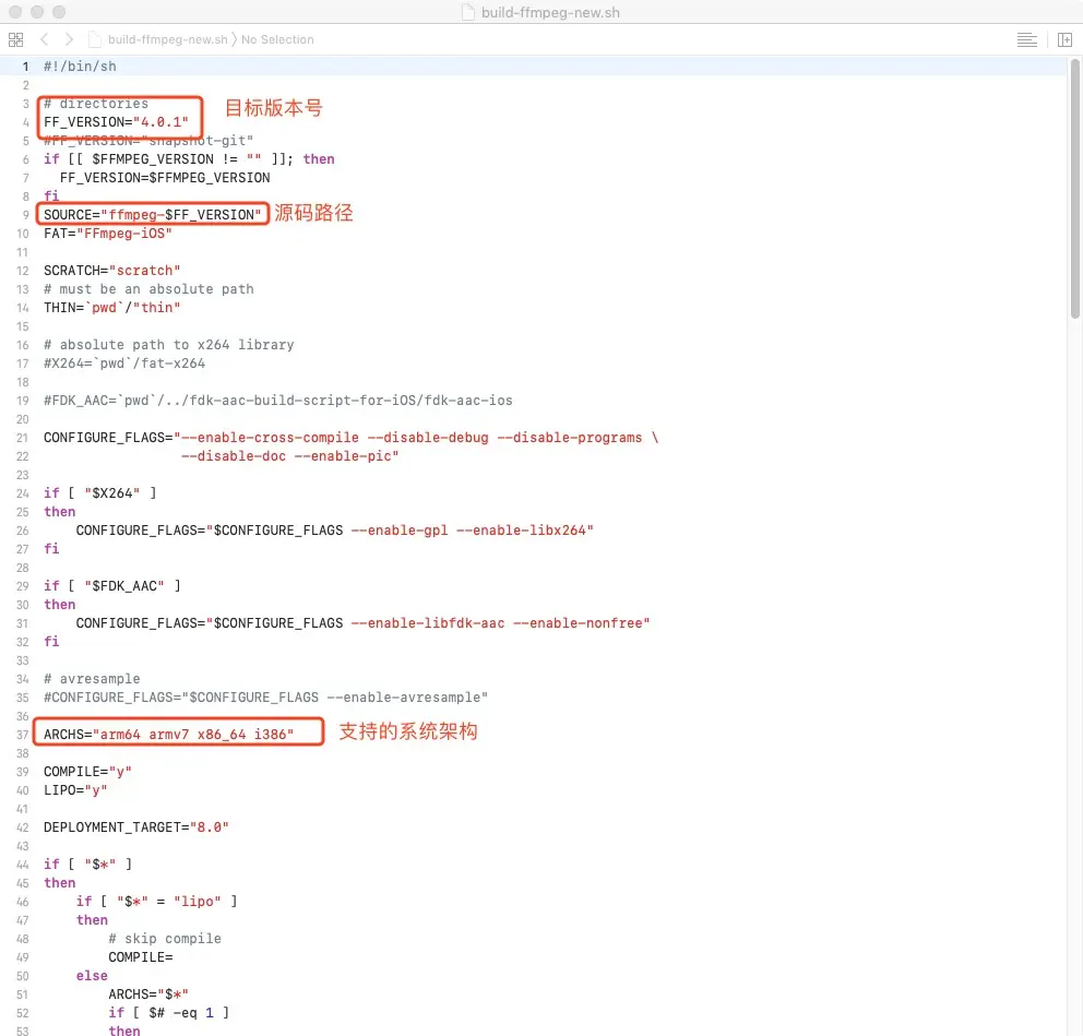 本次编译使用https://github.com/kewlbear/FFmpeg-iOS-build-script项目内的编译脚本进行编译。支持ffmpeg4.2版本编译脚本已上传,可点击build-ffmpeg-new.sh下载。