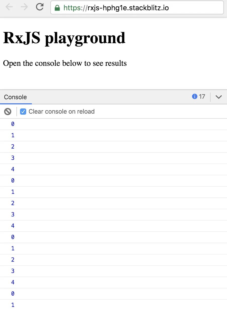 .pipe(switchMap(() => interval(500).pipe(take(10))))
