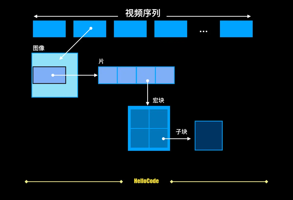 H264结构中,一个视频图像编码后的数据叫做一帧,一帧由一个片(slice)或多个片组成,一个片由一个或多个宏块(MB)组成,一个宏块由16x16的yuv数据组成。宏块作为H264编码的基本单位。