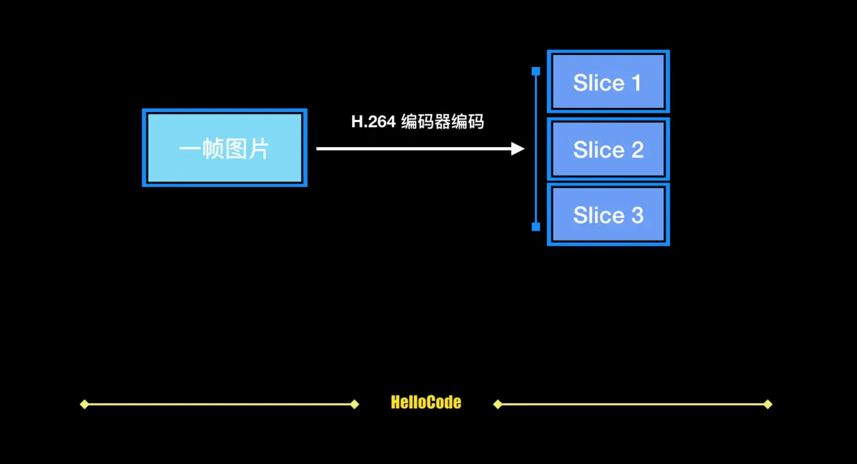 在一副压缩的H264的帧里,可以包含多个切片.至少有一个切换.