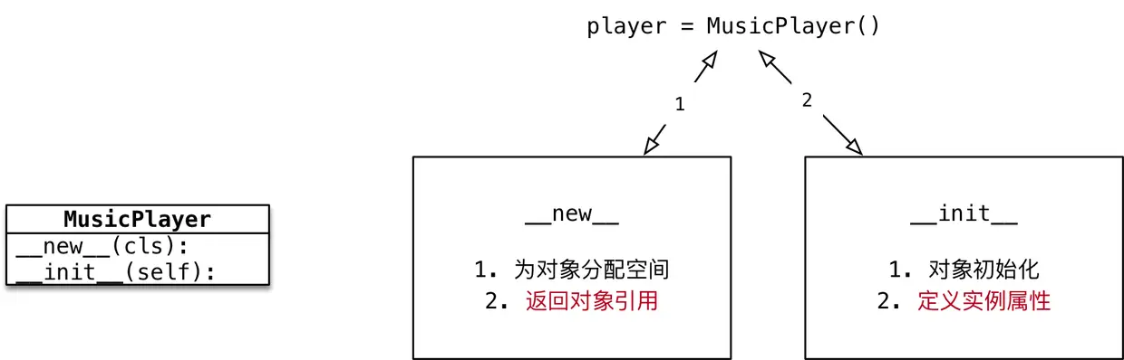 Python的解释器 首先 会 调用__new__方法为对象 分配空间 __new__是一个 由object基类提供的 内置的静态方法,主要作用有两个:-