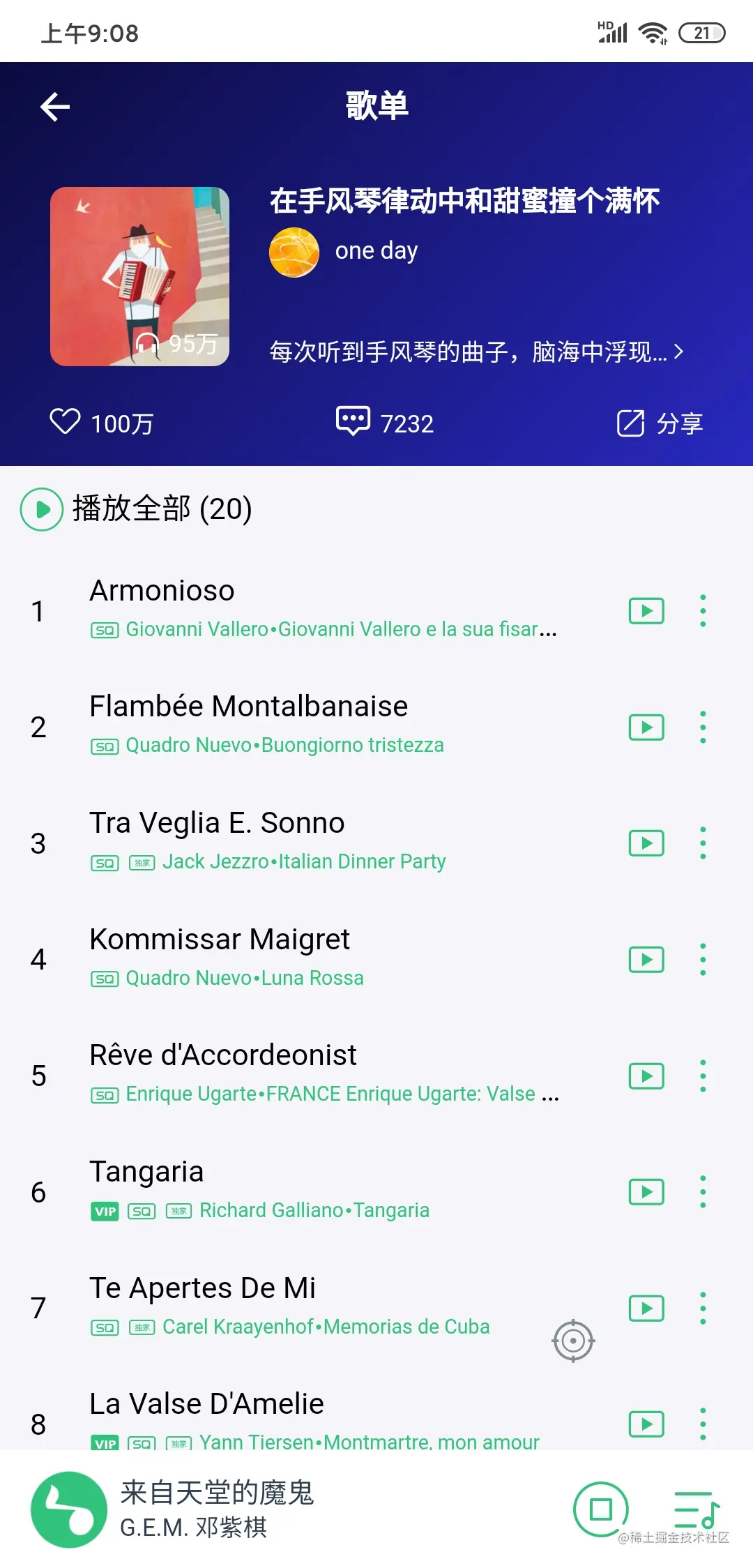 vkey字段,只能重复写了很多代码,歌曲列表组件在这个页面不能复用,解决办法就是先通过歌曲的专辑id查到专辑的歌曲列表,再返回这首的mid再去查询歌曲信息,绕了一个大弯很是头疼,导致后面的正在播放歌单列表增加了一大堆工作量。 -