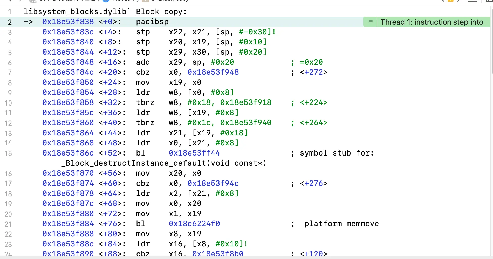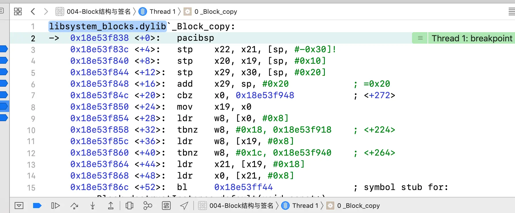 发现调用了_Block_object_assign,我们看到参数为啥加40呢?