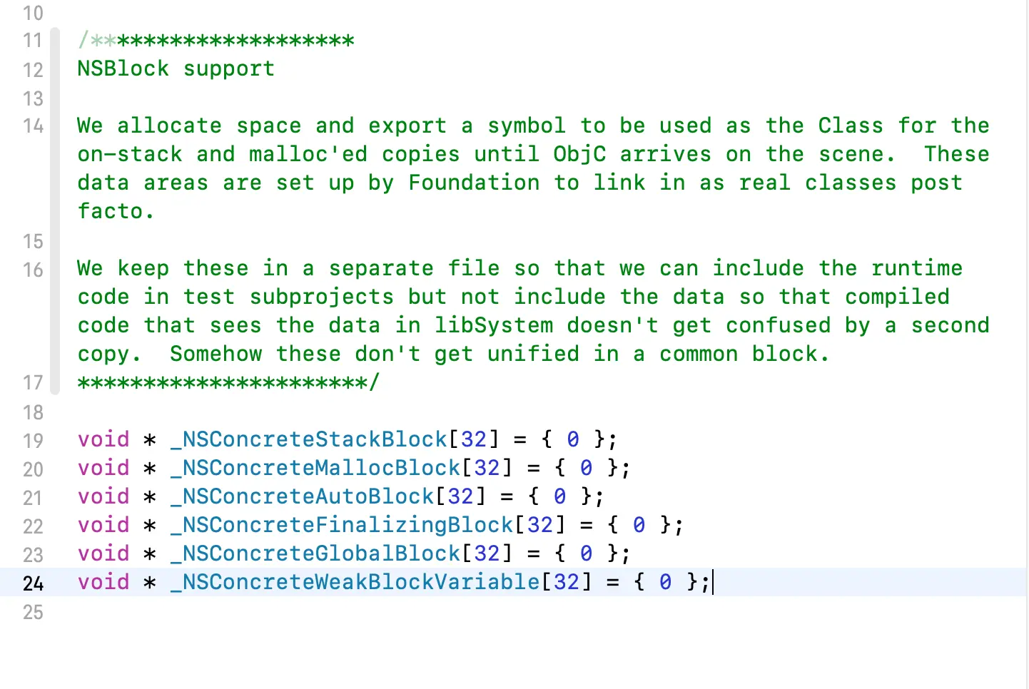 我们发现这个结构体跟OC对象的结构体是一样的,所以block本质上就是一个对象,并且isa指向的是&_NSConcreteStackBlock,我们可以在libclosure-73源码中找到