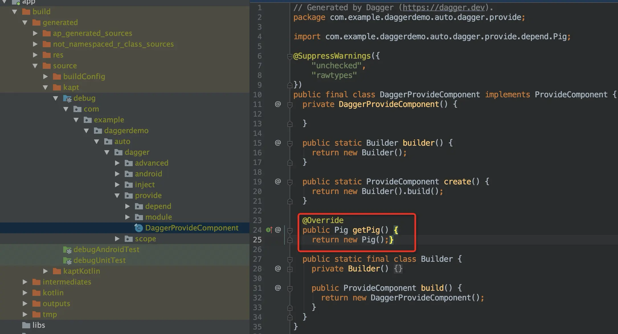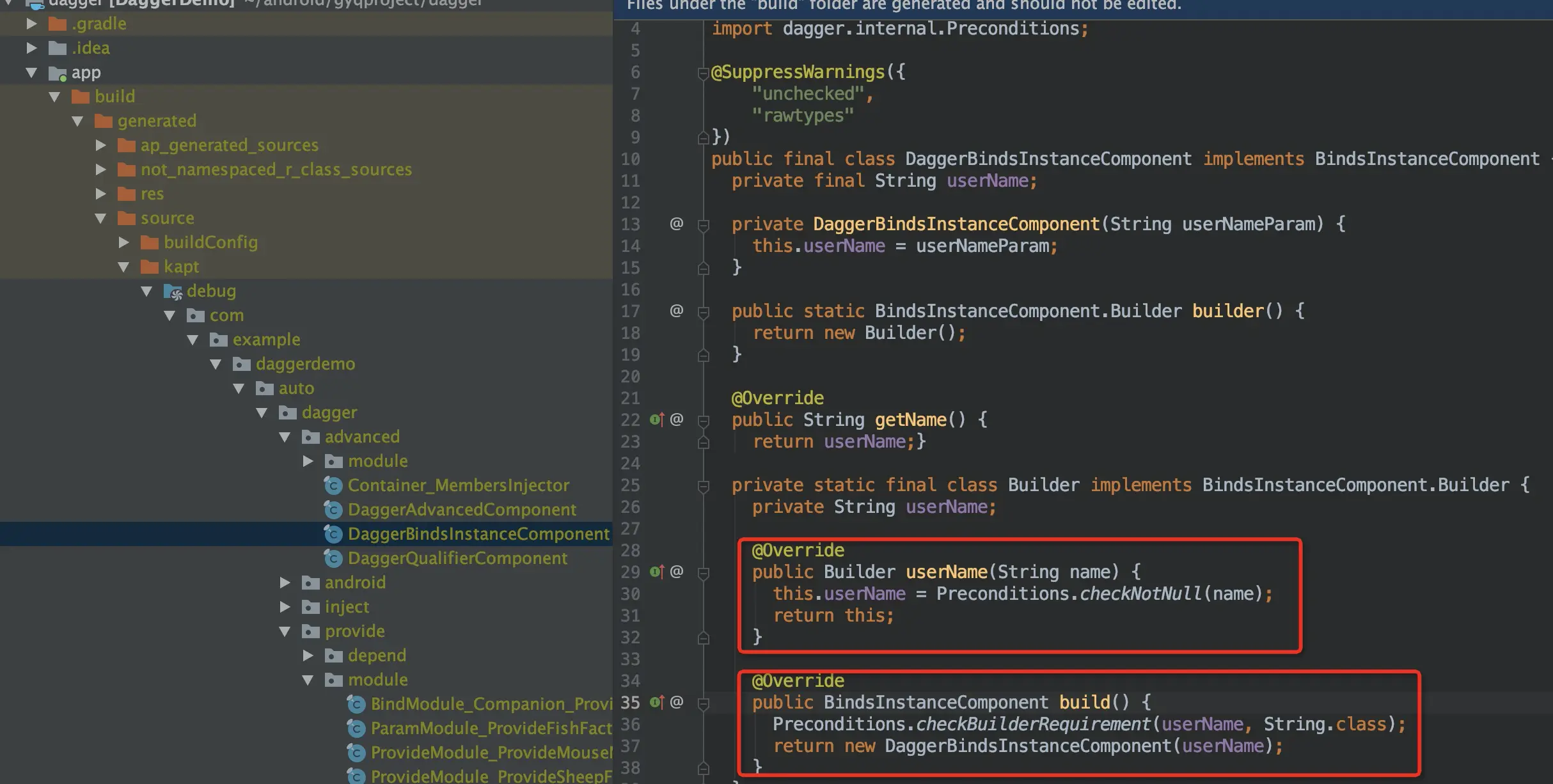 dagger2是一个依赖于编译器实现自动依赖注入的,因此学习Dagger2一定要看看编译器生成的类是咋样的。