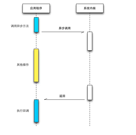 用户进程发起read操作之后,立刻就可以开始去做其它的事。而另一方面,从kernel的角度,当它受到一个asynchronous read之后,首先它会立刻返回,所以不会对用户进程产生任何block。然后,kernel会等待数据准备完成,然后将数据拷贝到用户内存,当这一切都完成之后,kernel会给用户进程发送一个signal,告诉它read操作完成了。