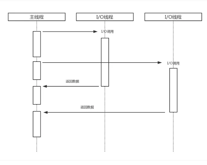 至此,JavaScript调用立即返回,由JavaScript层面发起的异步调用的第一阶段就此结束。JavaScript线程可以继续执行当前任务的后续操作。当前的I/O操作在线程池中等待执行,不管它是否阻塞I/O,都不会影响到JavaScript线程的后续执行,如此就达到了异步的目的。