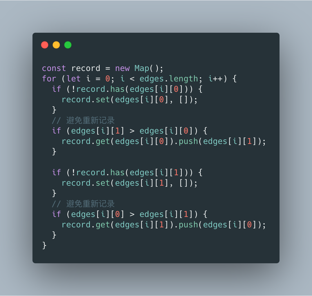 注意本题是一棵无向树,那么在利用 Map 记录 edges 数组中的边时,需要处理双向关系,由于这是一个树型关系,可以通过判断父子节点的大小,避免后续搜索过程中判断当前节点的访问状态。