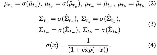由于输出是作为高斯模型的参数,bbox的损失函数将修改为负对数似然(negative log likelihood, NLL)损失,objectness和class的损失函数不变。公式5为的NLL损失,