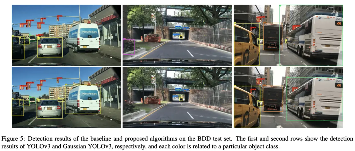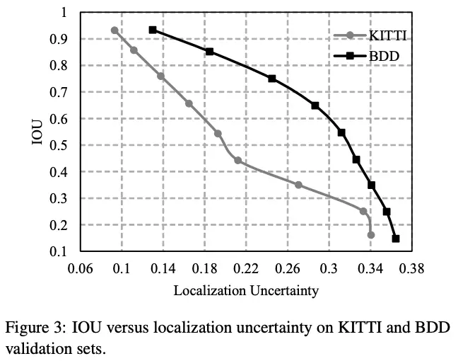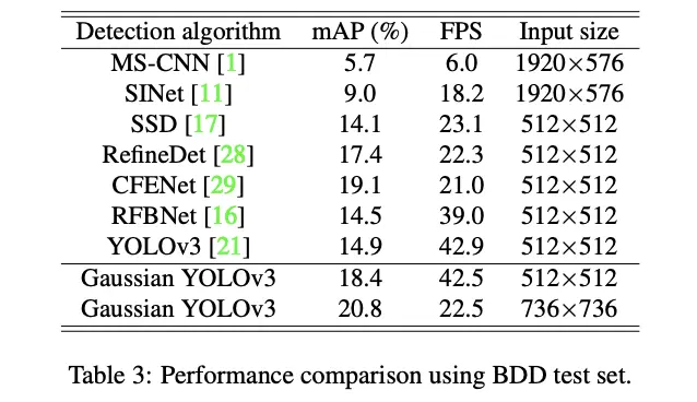 在自动驾驶中实时性和准确率都十分重要,论文为了增加检测算法的准确率,以及减少误判(FP)的出现,论文提出了Gaussian YOLOv3。该算法基于实时性框架YOLOv3,对bbox的预测值进行高斯建模输出不确定性(localization uncertainty),并且修改了bbox的loss函数,能够有效地提高准确率且保持实时性