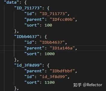 由于直接使用树形的的结构,对节点的增删改查不友好,所有进行了扁平化处理,将树拆成了两个结构: