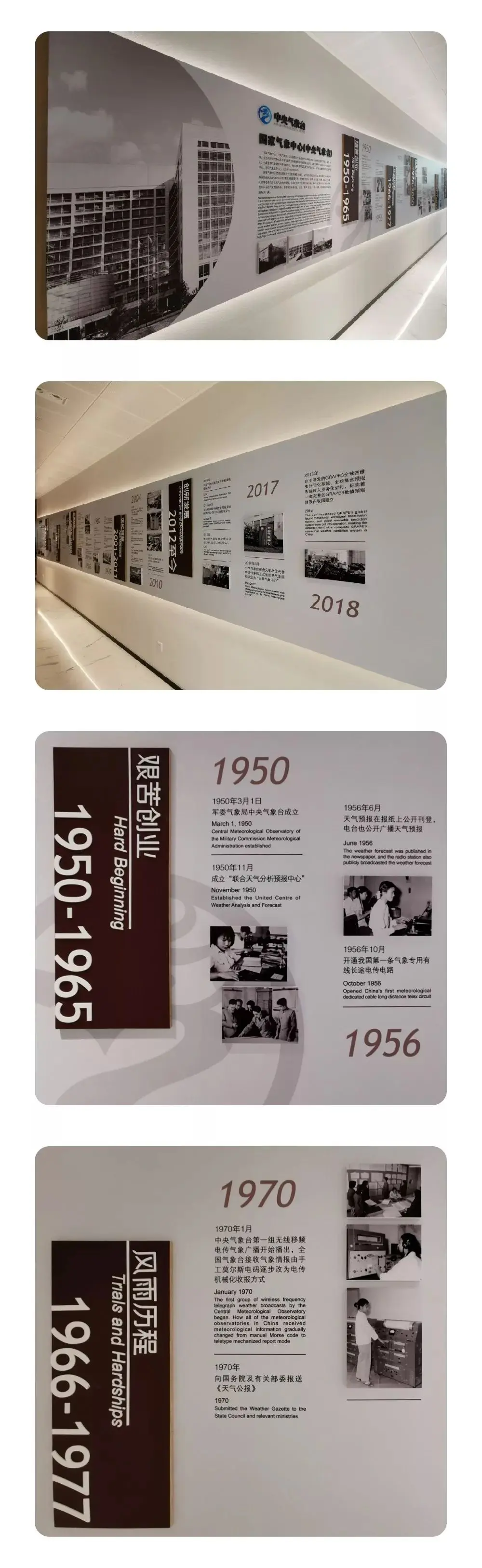 在会商室的东门和西门两侧,各有一条长廊,分别是“NMC历史长廊”和“NMC文化长廊”。