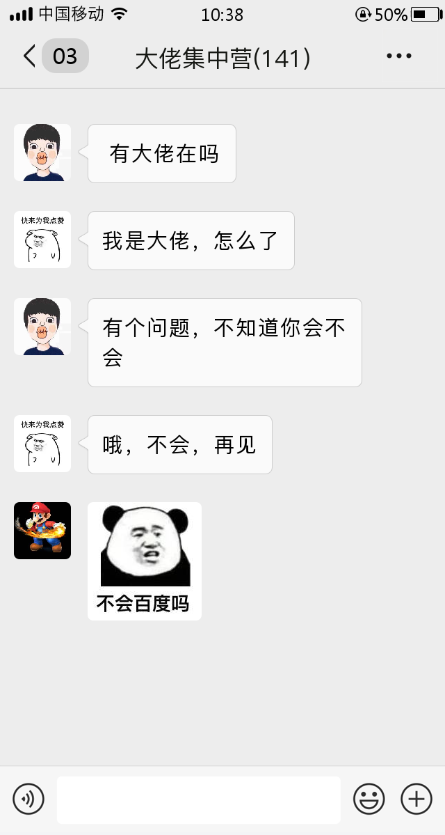 只有前面几步都试过了,还是没有头绪,才采取这一步,向同事或者群友提问。到了这一步,就涉及到了今天说到的提问的方法。