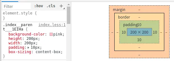 </style>因为box-sizing: content-box只包含content,所以可以放下width为200的内容,但是盒子的实际宽度也被撑大了