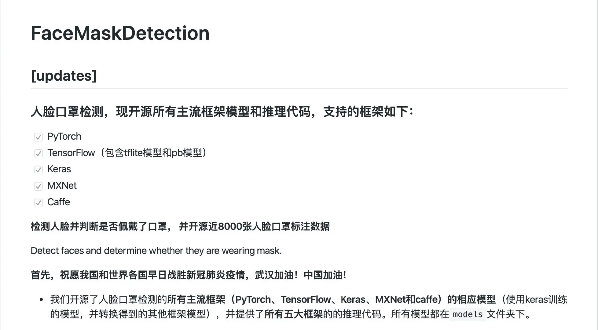 上班划水在GitHub上看到一个有趣的开源项目,它能检测我们是否有戴口罩,测试后识别率挺高的,也能够适应不同环境,现在分享给大家,人脸口罩检测,检测人脸并判断是否佩戴了口罩, 并开源近8000张人脸口罩标注数据。