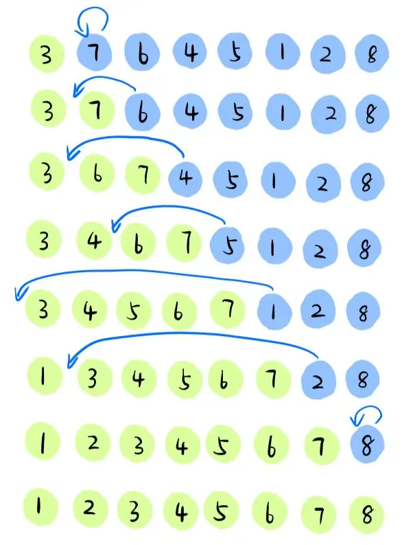 所以在具体讲解希尔排序之前,我们还是先来回顾一下插入排序的整个实现过程: