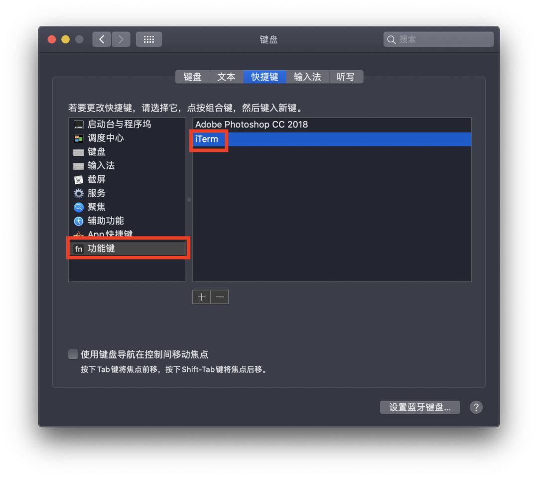 同时在 快捷键 → 功能键 设置中添加 iTerm 应用,这样打开 iTerm2 窗口时就可以直接使用 F12 键来关闭窗口。