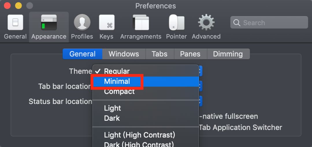 如果想统一配色,需要稍微调整一下配置,打开 Appearence → General,将 Theme 改为 Minimal: