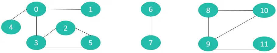 假设现在有这样一个需求,如下图的每一个点代表一个村庄,每一条线就代表一条路,所以有些村庄之间有连接的路,有些村庄没有连接的路,但是有间接连接的路