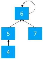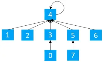 根据上面的定义,索引4的村庄的父节点索引为5,所以其实索引4与5之间是有联系的,并且5,6,7,之间本来也存在联系,所以最终可以用下图来进行表示,所以可以认为4,5,6,7也是属于同一个集合的。