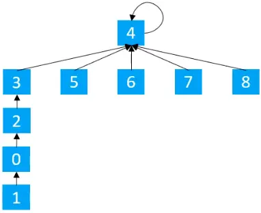 执行union(4,0)操作的话,根据上面的流程,最终得到的结果为