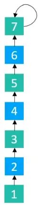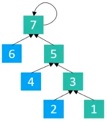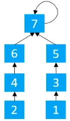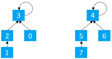 在执行find(1)操作时,会将1指向3,3指向5,5指向7,2指向4,4指向6,6指向7,所以最终执行完毕后的结果如下图