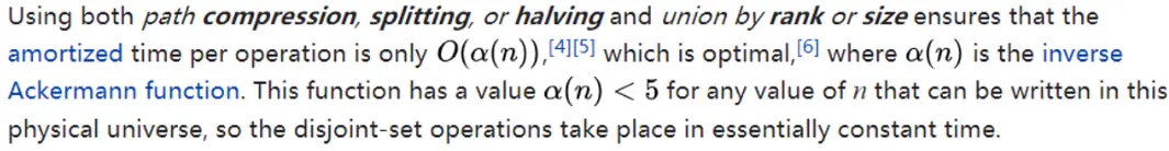 - 可以确保每个操作的均摊时间复杂度为O(α(n)),α(n) < 5