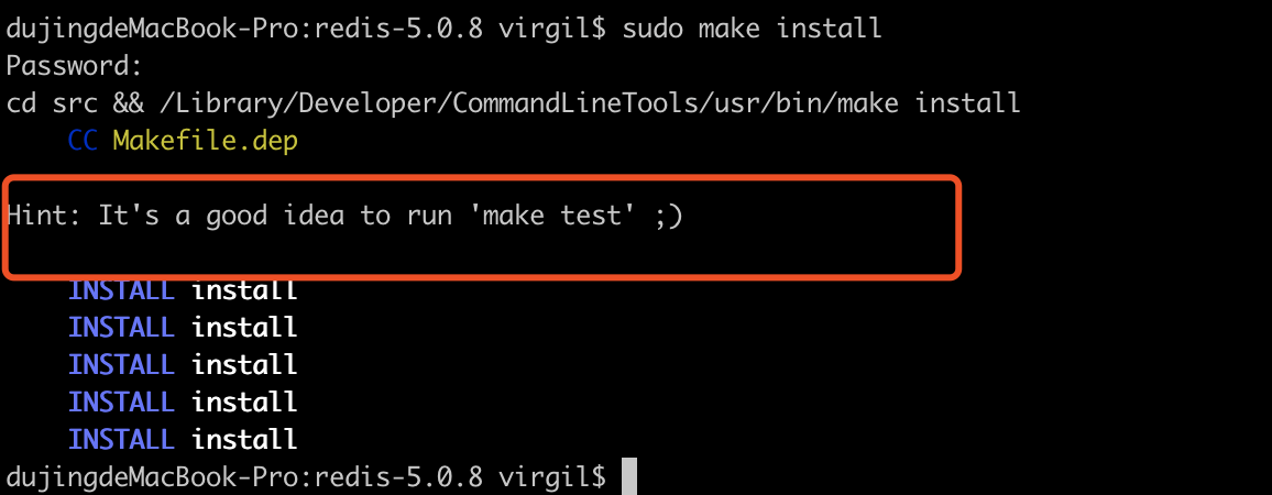 sudo make installRedis 安装成功之后,提示如下图所示信息: