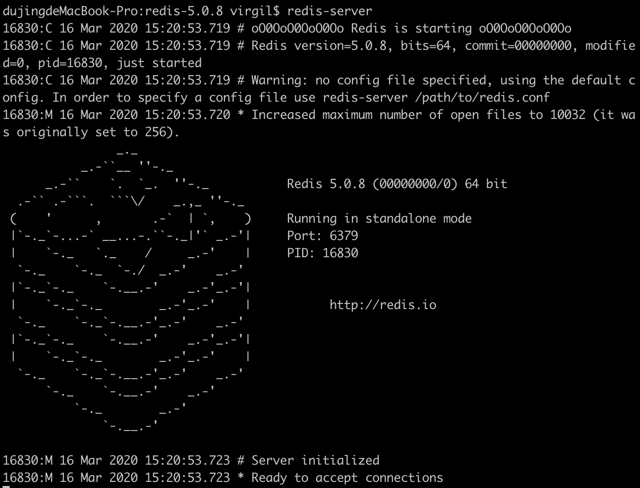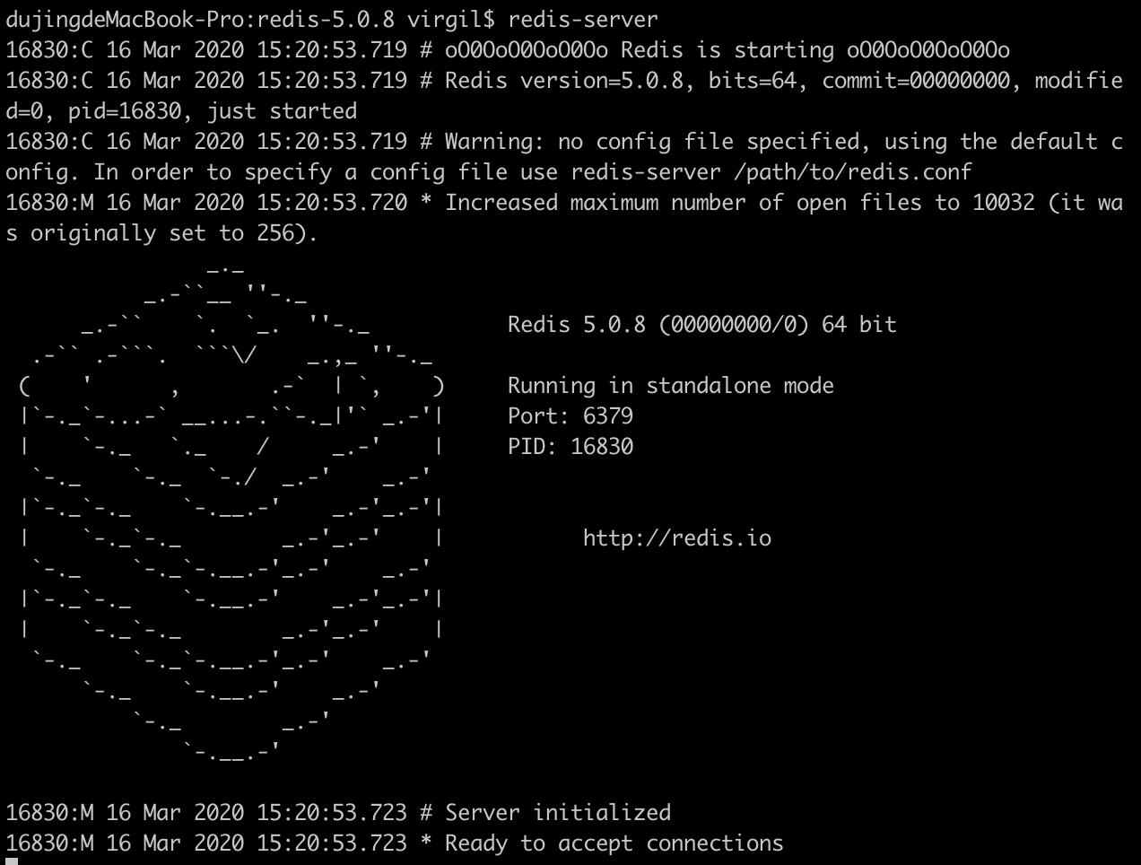 redis-server出现下图所示信息,表示 Redis 服务正常启动: