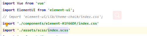 - scss的封装及引用 —— 题外话(不更换主题色可跳过):我们可以不仅限于element原有的色彩,可以在element官网上生成自己喜欢的主题色,我这里用到的“#1F66DF”(别问啥蓝 问就是随便选哒),下载后会有一个css文件包,导入到项目并且在项目中使用。