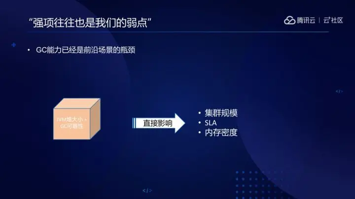 例如,在主流的Hadoop技术栈,NM等节点的堆大小直接影响到集群和数据规模,GC稳定性又与SLA密切相关,目前JVM在大堆GC方面,还远不算完美,需要进一步改进。