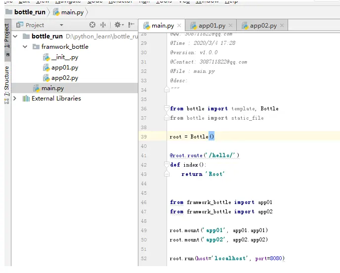 Flask框架中蓝图可以组织封装好相关的组模块,把相关的功能模块包含在同一个组别下,而bottle可以使用子应用的模式来组织代码结构。