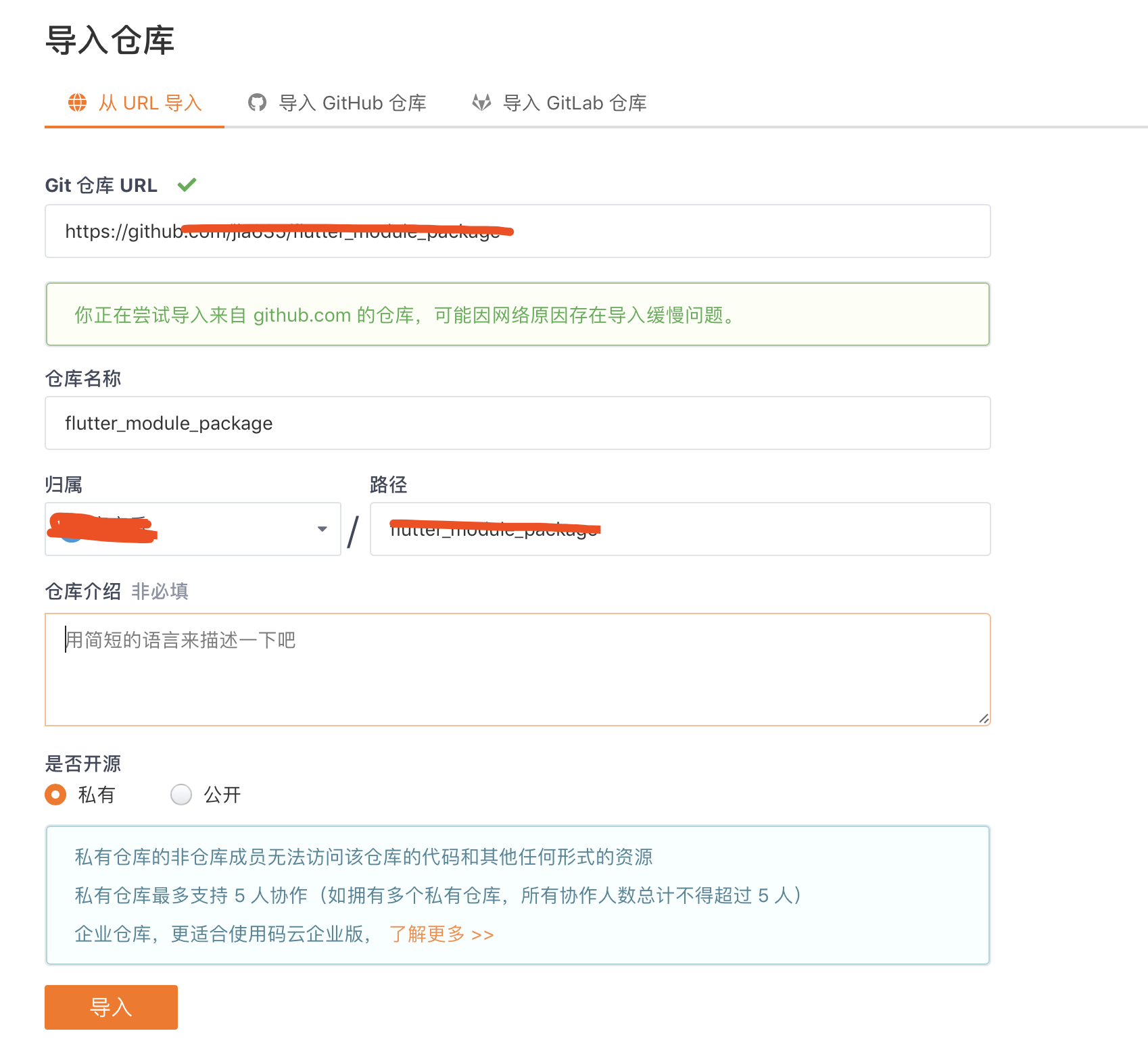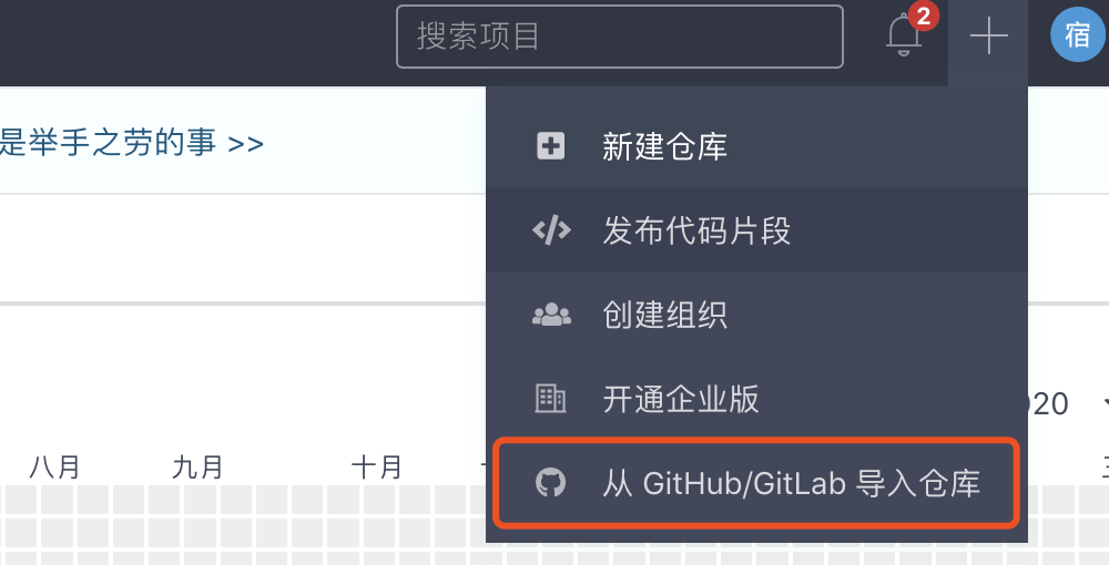 - 右上角新建仓库的“+” 选择“从 GitHub/GitLab导入仓库”