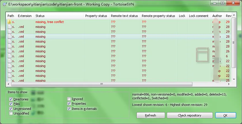 使用SVN提交程式碼時,提示報錯remains in tree-conflict
